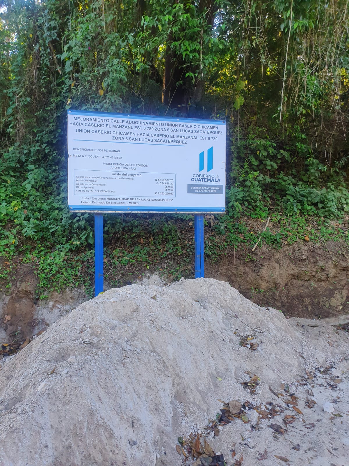 - MEJORAMIENTO CALLE ADOQUINAMIENTO UNION CASERIO CHICAMEN HACIA CASERIO EL MANZANAL EST 0 780 ZONA 6 SAN LUCAS SACATEPEQUEZ, SACATEPEQUEZ.