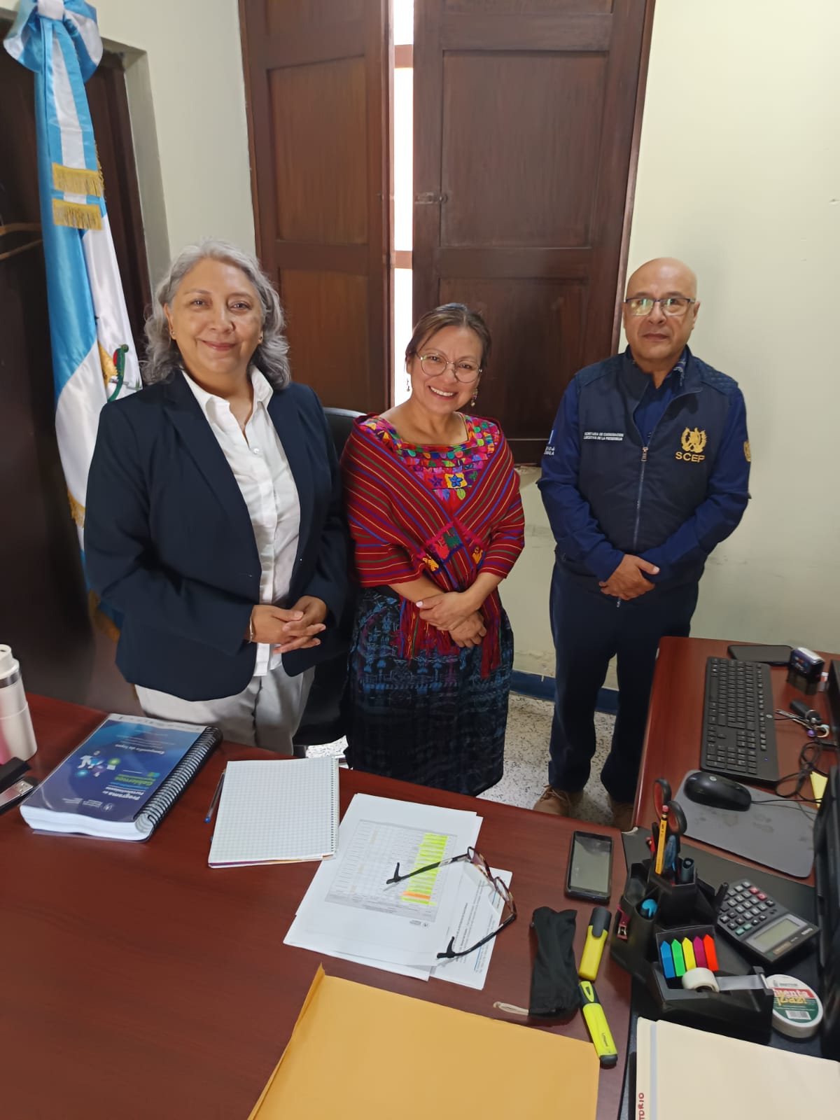 La Directora Ejecutiva de Codede Sacatepéquez, Licda. Evelyn Alvarado, la Señora Presidenta Coordinadora del Consejo de Desarrollo de Sacatepéquez, Angelina Aspuac y el Arq. Byron Herrera de la Secretaría de Coordinación Ejecutiva de la Presidencia –SCEP-, se reunieron para tratar asuntos relacionados a los avances de los proyectos del departamento, con el fin de impulsar la inversión pública para generar infraestructura que favorezca el desarrollo y el bienestar de los ciudadanos del Departamento.