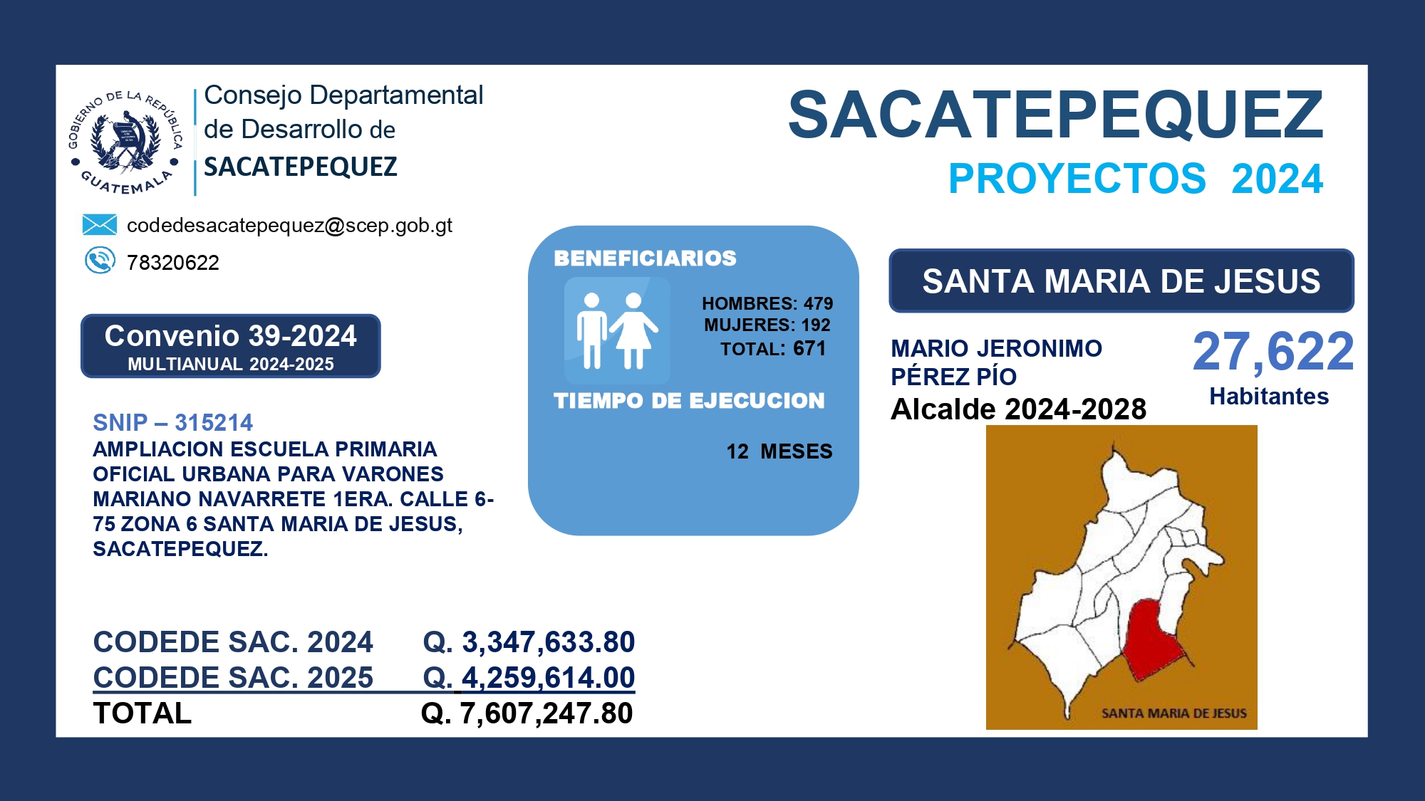 - AMPLIACION ESCUELA PRIMARIA OFICIAL URBANA PARA VARONES MARIANO NAVARRETE 1ERA. CALLE 6-75 ZONA 6 SANTA MARIA DE JESUS, SACATEPEQUEZ. SNIP-315214 -
